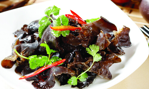 黑木耳,性甘味平,有排毒解毒、清胃涤肠、和血止血等功效。木耳中所含的一种植物胶质,有较强的吸附力,可将残留在人体消化系统的灰尘杂质集中吸附,再排出体外,从而起到排毒清胃的作用。其还同时具有养血驻颜,令人肌肤红润,容光焕发的功效,并可防治缺铁性贫血。
