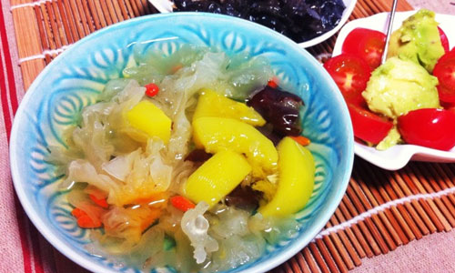 材料:红枣15枚,白木耳15克,黑木耳15克,盐、香油,葱、姜适量,清水100毫升。