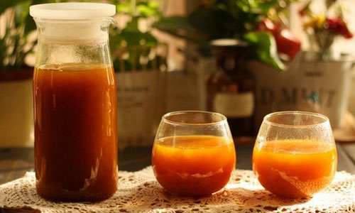 4)将红枣枸杞汁加冰糖,加热与沸腾就可以喝了。